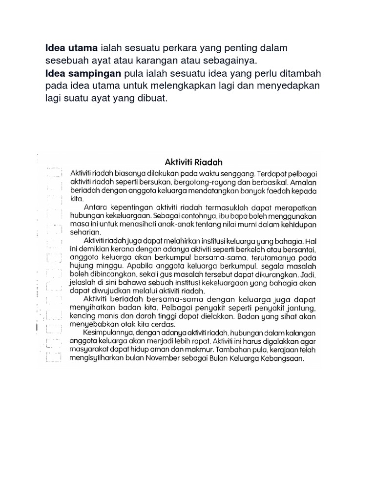 Ejercicio De Bahasa Melayu Tahun 4 Idea Utama Idea Sampingan